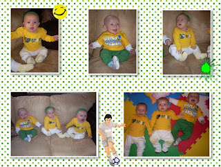 O Teteu é um figurinha, está um baita bebezão. Também é de sorriso fácil e gargalhada gostosa, adora quando o jogo para cima. Também fica sentadinho bonitinho, mas não rola, a pediatra disse que é porque ele é muito grandão.